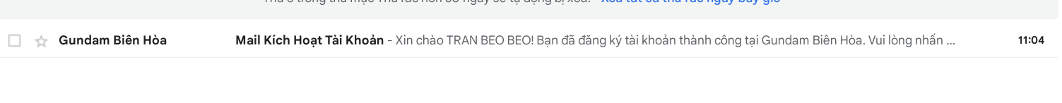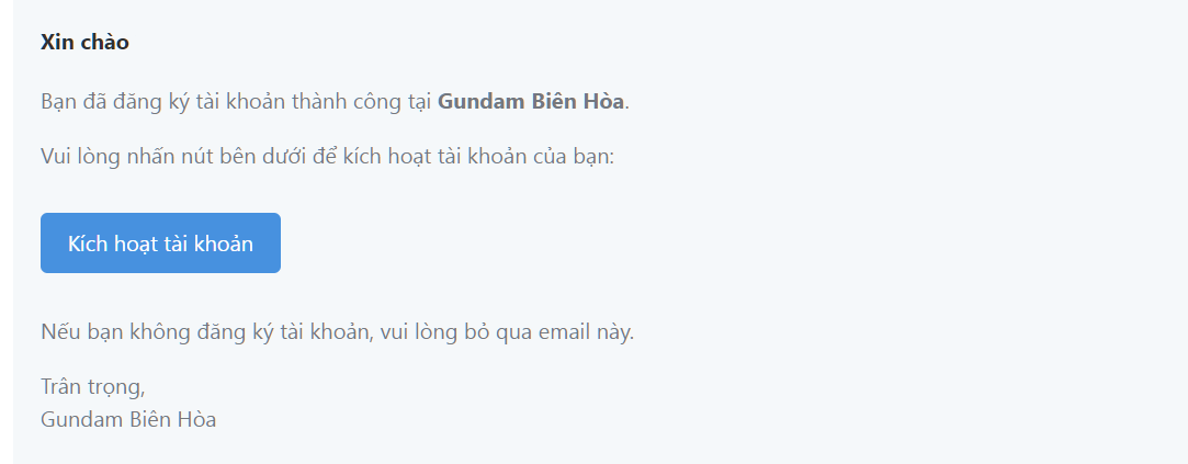 BẠN HÃY VÀO ĐỊA CHỈ EMAIL KIẾM MAIL TÊN LÀ GUNDAM BIÊN HÒA -KÍCH HOẠT TÀI KHOẢN . LƯU Ý VÌ NHIỀU LÝ DO MAIL NÀY CO THỂ NẰM TRONG MỤC THƯ RÁC HOẶC SPAM, NÊN ĐỂ CHẮC CHẮN KHÔNG BỎ LỠ HÃY KIỂM TRA TRONG ĐÓ.